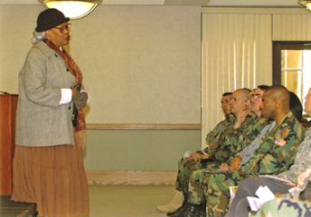 M.Waddy-Thibodeaux as Rosa Parks at Fort Riley, Kansas in Feb